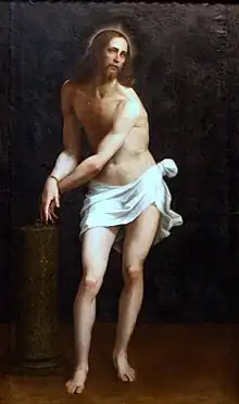 Del mismo año es la primera obra estrictamente religiosa conservada: el Cristo a la columna del Colegio del Corpus Christi, para el que se valió de una estampa de Wierix basada en el Cristo resucitado de Miguel Ángel en Santa Maria sopra Minerva de Roma, al que Sariñena supo, no obstante, infundir vida con el rostro bañado en lágrimas y un tratamiento lumínico novedoso, al hacer surgir la bella silueta del cuerpo de Cristo desde la oscuridad del fondo.
