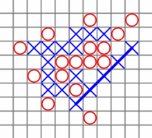 - k ≥ 8 es un empate en un tablero infinito. No está claro si esta estrategia se aplica a cualquier tamaño de tablero finito.[2] No se sabe si el segundo jugador puede forzar un empate cuando k es 6 o 7 en un tablero infinito.