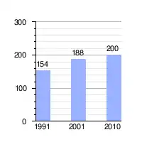Según el censo de 2010, el índice de masculinidad era de 102 % (101 hombres y 99 mujeres).[6]