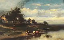 Jules Dupré fue un pintor francés nacido en Nantes en 1812 y fallecido en 1889. Estuvo en relación, aunque sólo episódicamente, con la Escuela de Barbizon integrada por pintores paisajistas y tuvo una relación fraternal, y en ocasiones tempestuosa, con Theodore Rousseau.