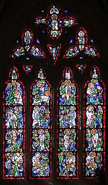 Una ventana de la catedral de Quimper representa a Michel Le Nobletz presentando a Julien Maunoir a Renė du Louët, obispo de Cornouaille, erigido como homenaje al obispo du Louët, reconociendo la importancia de Le Nobletz y Maunoir como misioneros bretones.