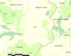 - Situación de Jully en un mapa de Francia y de comunas limítrofes (en francés)