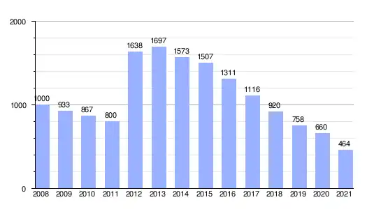| Gráfica de evolución de la deuda viva del Ayuntamiento de Jun entre 2008 y 2021 |