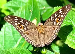 - Esta obra contiene una traducción derivada de «Junonia lemonias» de Wikipedia en inglés, publicada por sus editores bajo la Licencia de documentación libre de GNU y la Licencia Creative Commons Atribución-CompartirIgual 4.0 Internacional.