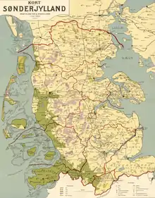 - Esta obra contiene una traducción derivada de «Southern Jutland» de Wikipedia en inglés, concretamente de esta versión, publicada por sus editores bajo la Licencia de documentación libre de GNU y la Licencia Creative Commons Atribución-CompartirIgual 4.0 Internacional.
