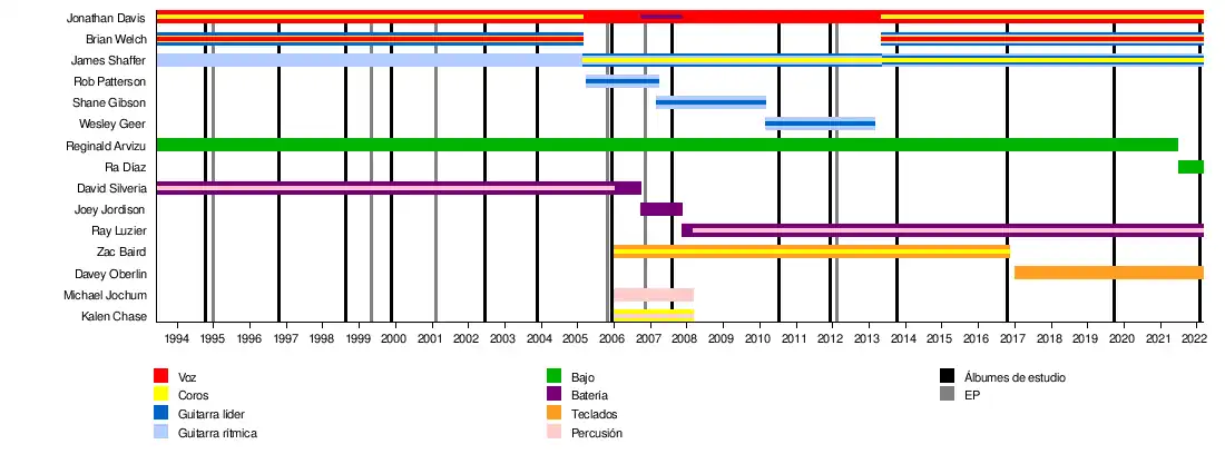- Jonathan Davis: voz, gaita (1993-presente), batería (2006-2008)