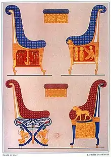 - En Cg y Ch están representados diversos objetos funerarios, estandartes divinos, y fauna del lugar.