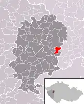 Se encuentra ubicada al noreste de la región, en la cuenca hidrográfica del río Berounka —un afluente izquierdo del río Moldava que, a su vez, lo es del Elba—, y cerca de la frontera con la región de Bohemia Central.[1]