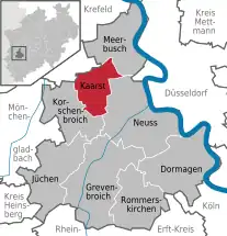 ![]() Kaarst Ubicación en el estado de Renania del Norte-Westfalia | ||
