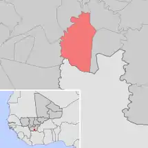 Se encuentra ubicada al sur del país, junto a la frontera con Burkina Faso y Costa de Marfil y al sureste de la capital nacional, Bamako.