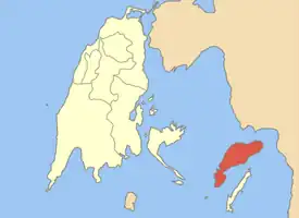La isla tiene unos once kilómetros de largo y hasta cuatro de ancho y una superficie de más de 25 kilómetros cuadrados. Se encuentra al este de las islas Léucade y Meganisi y está separada por unos dos kilómetros de la parte continental.