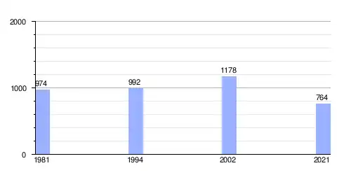Hasta 2021 la población era de 764 habitantes,[2] con una densidad de población de 205,1 habitantes por kilómetro cuadrado.[2]