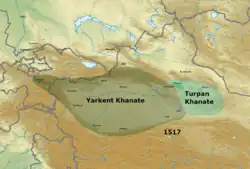 La mayoría de los territorios del Kanato de Turpán fueron conquistados por el Kanato de Yarkand, la rama occidental de Mogolistán, en 1570.