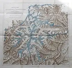 - 1855 Herrmann von Schlagaintweit de Alemania se hizo cargo de la Magnetic Survey of India (exploración magnética de la India), recorrió las proximidades y dibujó un panorama del Everest y del Kanchenjunga, antes de ser rechazado por soldados nepalíes.[3]