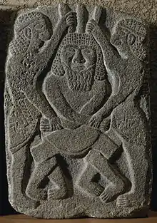 Este relieve fue encontrado en el templo-palacio de Guzana. Representa a dos héroes sometiendo a un enemigo. Museo Walters, Baltimore.