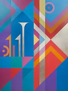 - 1965–67 Schulhaus Gutschick, Winterthur(ZH) – 1965, jardín de símbolos, alivios de roble (atrio-piso de tierra), 1967 mural pintura (entrada externa)