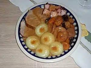 Los Kartoffelklöße o Kartoffelknödel, en Bayern también Reiberknödel (de „reiben“ - rallar) y en Austria Erdäpfelknödel, son una variante de Klöße que se elaboran bien con papas cocidas (Schlesische Klöße de Silesia), o bien con papas crudas. En muchas recetas se mezclan las patatas crudas y cocidas en un puré de papas que se denomina Knödeln halb und halb. Los Thüringer Klöße son una variante, así como los Sonneberger Klöße.