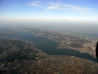 Vista aérea del lago Kitaura, de Kashima e Itako.