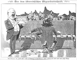 El marginal Partido Nacionalista Alemán, encabezado por Georg Schönerer, con la esperanza de desestabilizar el Imperio y unir las tierras germanas de Austria al nuevo Imperio alemán, interrumpió los procedimientos parlamentarios e instigó violentas protestas. Aunque la mayoría de alemanes de Austria no tenía simpatía por la causa del Partido Nacionalista, participó en las protestas callejeras a lo largo del Imperio austrohúngaro, con la esperanza de que la ordenanza fuera rechazada. El obstruccionismo de los nacionalistas alemanes ralentizó o detuvo las iniciativas parlamentarias en el Reichsrat y surgieron disturbios en Viena, Graz, Salzburgo, y en las provincias alpinas.[2] También se dieron disturbios en Praga y la ley marcial fue aplicada ahí.