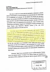 - «Harrington fue desalojada del MP tras ingresar en la maleta de un carro». El Nacional. 7 de julio de 2017. Archivado desde el original el 2 de diciembre de 2017. Consultado el 2 de diciembre de 2017.