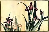 La obra de Van Gogh recibió con especial intensidad la influencia de Hokusai. Esto es patente en los últimos paisajes llenos de movimientos ondulantes, en el gran círculo que forma el sol rodeado por líneas que forman los diferentes colores, el negro que empleaba en sus contornos y en el ritmo de trazos rotos; también se aprecia en una de sus últimas pinturas, Iris (1889). Después de realizar esta obra, en una carta a su hermano Theo, Van Gogh comentó que sus propias obras: «No parecen japonesas, pero son las creaciones más japonesas que nunca he hecho». Carta a Theo n.º 501 del 18 de julio de 1888.[32]
