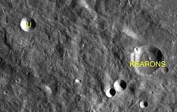 Por convención estos elementos son identificados en los mapas lunares poniendo la letra en el lado del punto medio del cráter que está más cercano a Kearons.