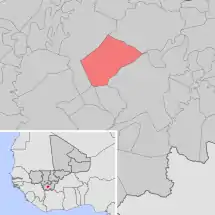 Se encuentra ubicada al sur del país, junto a la frontera con Burkina Faso y Costa de Marfil y al sureste de la capital nacional, Bamako.