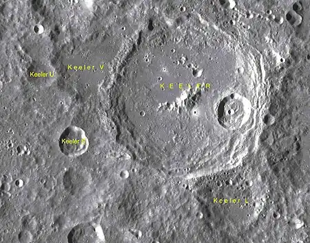 Por convención estos elementos son identificados en los mapas lunares poniendo la letra en el lado del punto medio del cráter que está más cercano a Keeler.