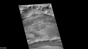 ![]() Cráter Keeler, imagen de la cámara CTX (Mars Reconnaissance Orbiter) |