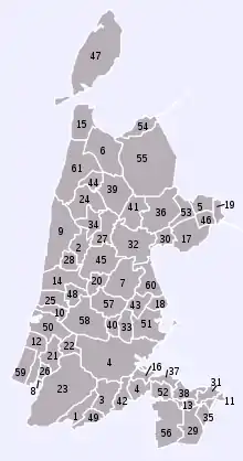 Municipios de las actuales regiones administrativas