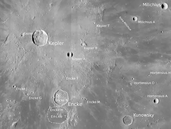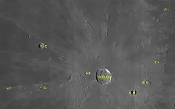 Por convención estos elementos son identificados en los mapas lunares poniendo la letra en el lado del punto medio del cráter que está más cerca de Kepler.