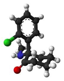 La ketamina o cetamina[2] es una droga disociativa con potencial alucinógeno, derivada de la fenciclidina, utilizada original y actualmente en medicina por sus propiedades sedantes, analgésicas y, sobre todo, anestésicas.[3] Es de los únicos anestésicos que entran por vía intrasmuscular, es muy positivo para uso en pacientes conflictivos o con problemas psicomotrices.