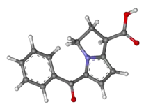 El ketorolaco (también llamado trometamina ketorolaco) es un antiinflamatorio no esteroideo (AINE) de la familia de los derivados heterocíclicos del ácido acético, con frecuencia usado como antipirético, antiinflamatorio y analgésico.[1][2] Es el primer AINE para uso endovenoso y actúa inhibiendo la síntesis de prostaglandinas.Hay que tener en cuenta que el tratamiento farmacocinético del ketorolaco en el cuerpo humano tiene una selectividad enantiomérica significativa. por lo tanto, es importante monitorizar los niveles sanguíneos individuales para poder evaluar correctamente su efecto terapéutico.[3]