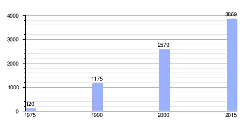 | Gráfica de evolución demográfica de Khokana entre 1975 y 2015 |