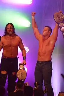 ![]() K.E.S., Lance Archer (izquierda) y Davey Boy Smith Jr. (derecha). | ||