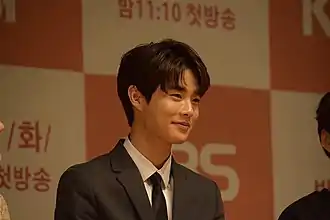 ![]() Kim Kwan-soo durante la conferencia de prensa de la serie "I Hate Going to Work" en el 2019. | ||