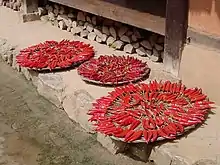 Kimchi ha sido un elemento básico en la cultura coreana, pero las versiones históricas no fueron un plato picante. Los primeros registros de kimchi no mencionan el ajo o el chile. Los pimientos picantes, ahora un ingrediente estándar en el kimchi, eran desconocidos en Corea hasta principios del siglo XVII debido a que era un cultivo del Nuevo Mundo. Los pimientos picantes, originalmente originarios de América, fueron introducidos al este de Asia por los comerciantes portugueses. La primera mención de ají se encuentra en Jibong yuseol, una enciclopedia publicada en 1614. Sallim gyeongje, un libro del siglo XVII al 18 sobre el manejo de la granja, escribió sobre kimchi con chiles. Sin embargo, no fue hasta el siglo XIX que el uso de los chiles en el kimchi fue generalizado. Las recetas de principios del siglo XIX se parecen mucho al kimchi de hoy.