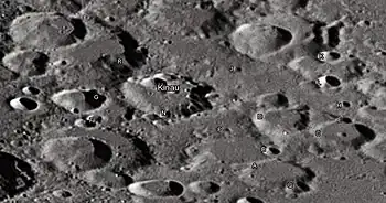 Por convención estos elementos son identificados en los mapas lunares poniendo la letra en el lado del punto medio del cráter que está más cercano a Kinau.[4]