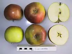 ![]() La variedad de manzana 'King's Acre Pippin' con secciones cruzadas. | ||