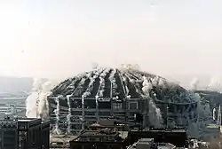 Controlled Demolition, Inc. demolió el Kingdome por implosión el 26 de marzo de 2000 (un día antes del 24 aniversario de la apertura de la Kingdome), estableciendo un récord reconocido por Guinness World Records por el edificio más voluminoso demolido de la historia.[17] el Kingdome fue el primer gran estadio con cúpula en ser demolido en los Estados Unidos y la demolición del Kingdome fue el primer evento en vivo cubierta por ESPN Classic.[17][18][19] El Kingdome fue demolido antes de que la deuda emitida para financiar su construcción fuera pagada en su totalidad y en septiembre de 2010, los residentes del condado de King siguen siendo responsables de más de $ 80 millones en deuda en la demolición del estadio.[20][21]