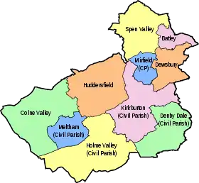![]() Mapa de los distritos de Kirklees