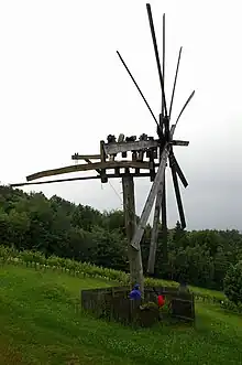 - vetrnica (la vela o molinillo) - gira en el viento y transfiere la rotación al eje; se hace con madera de álamo o abeto. El molinillo de Slovenske gorice tiene cuatro hojas, mientras que una de Haloze tiene seis y la de la Estiria austriaca tiene ocho.