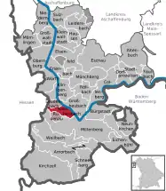 Se encuentra ubicado al noroeste del estado, en la región de Baja Franconia, cerca de la frontera con los estados de Hesse y Baden-Wurtemberg, y de la orilla del río Meno —uno de los principales afluentes del Rin por su margen derecha—.