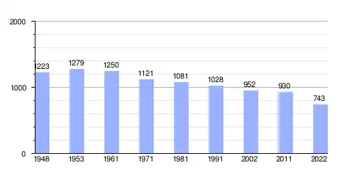 Hasta 2022 la población era de 743 habitantes,[3] con una densidad de población de 71,54 habitantes por kilómetro cuadrado.[3]
