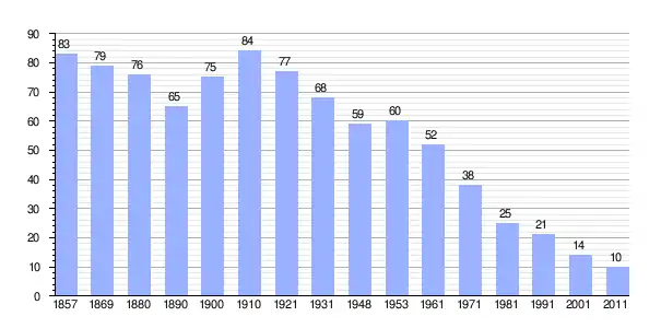 | Gráfica de población de Kocijani 1857-2011 |