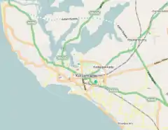 También es la sede del distrito de Kollam, uno entre los 14 distritos en el estado de Kerala. Está ubicado en el sur del distrito de Thiruvananthapuram, en el norte de Pathanamthitta y Alappuzha, en el este de Tamil Nadu y al oeste con el mar Arábigo.