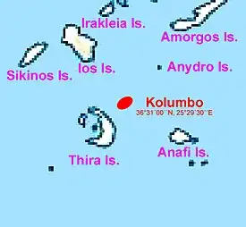 ![]() Ubicación de Kolumbo cerca de la isla de Santorini | ||