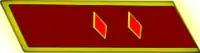 La insignia fue de dos rombos en el galón de la solapa, o dos rombos en la terminación de la solapa dependiendo de la uniformidad. El color del fondo variará según la unidad. Normalmente iba acompañada con el emblema de la unidad (blindados, artillería, etc).