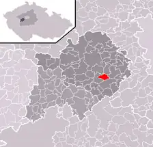 Se encuentra ubicada al oeste de la región y de Praga, en la cuenca hidrográfica del río Berounka —un afluente izquierdo del río Moldava—, y cerca de la frontera con la región de Pilsen.[1]
