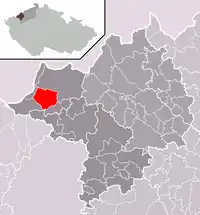 Se encuentra ubicada al noroeste de la región, en la ladera sur de los montes Metálicos, cerca del río Ohře —un afluente izquierdo del río Elba—, de la región de Karlovy Vary y del estado alemán de Sajonia.[1]